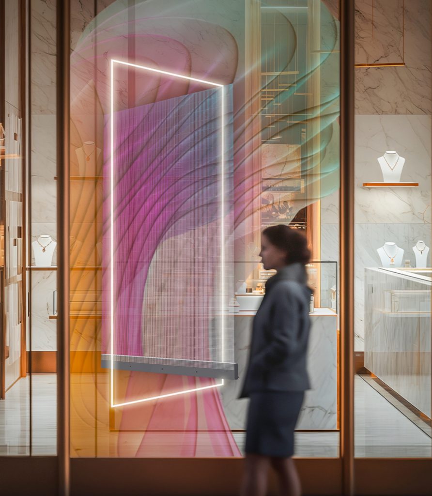 Außerdem wird die Mirak-Serie vorstellen, seine neueste visuelle Plattform für den Einzelhandel und die Kreativbranche. Mirak integriert digitale Inhalte in Schaufenster, Eingangsbereiche, Trennwände und offene Umgebungen, wobei natürliches Licht, Sichtlinien und architektonische Flusslinien erhalten bleiben. Mit einer Transparenz von 90 % und einer minimalistischen Struktur bleibt Mirak auch bei der Anzeige von Inhalten optisch unaufdringlich. Mirak ermöglicht digitales Storytelling in Schaufenstern, ohne Produkte zu verdecken oder Tageslicht zu blockieren: Der Inhalt erscheint innerhalb des Rahmens, sodass die Innenräume von der Straße aus sichtbar, offen und einladend bleiben.